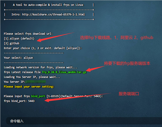 现在以FRP的方式实现域名访问。有大佬做了FRP服务端的一键脚本,我们拿来使用