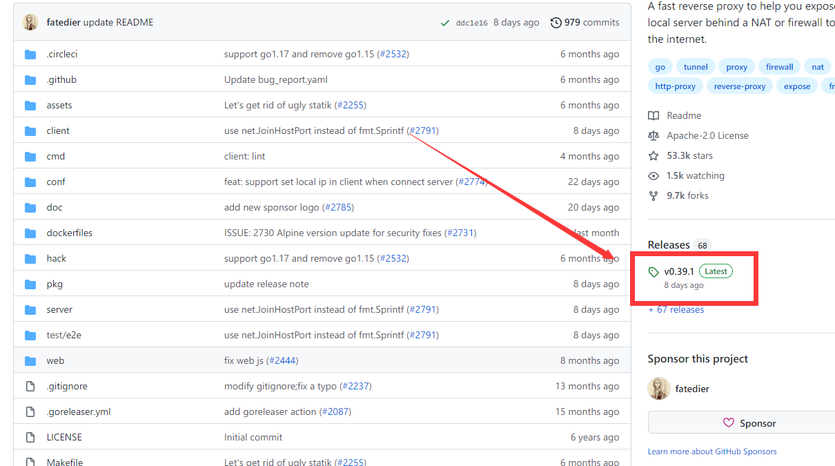 目前0.39.1,点开以后找到0.20下载Release v0.20.0 · fatedier/frp (github.com)