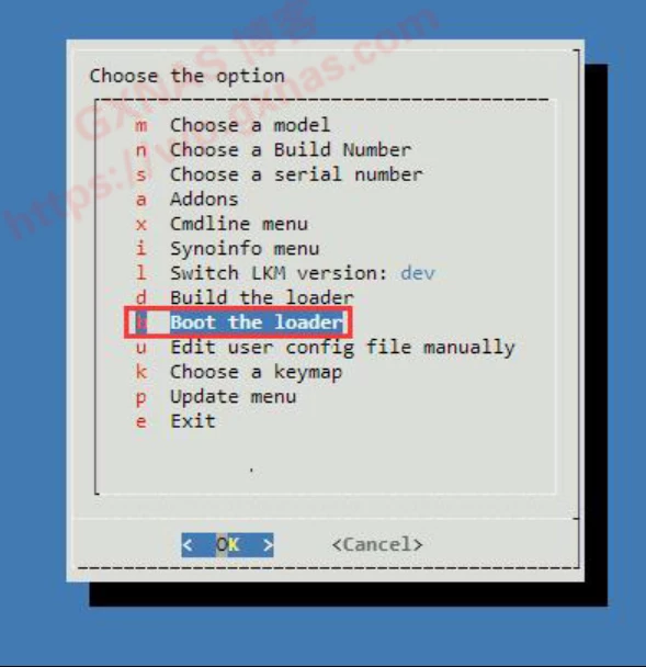 屏幕自动跳转到菜单,在“Boot the loader”处回车