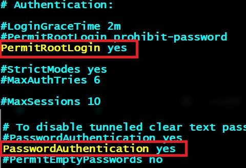 将PermitRootLogin 设置为yes,PasswordAuthentication设置为yes即可,:wq保存退出即可。