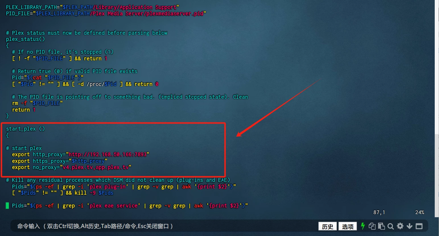 export no_proxy="v4.plex.tv,app.plex.tv"在这个位置加入以上内容