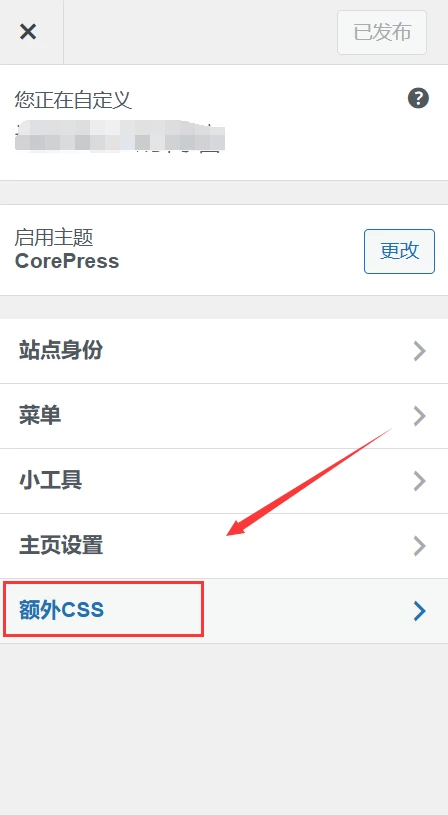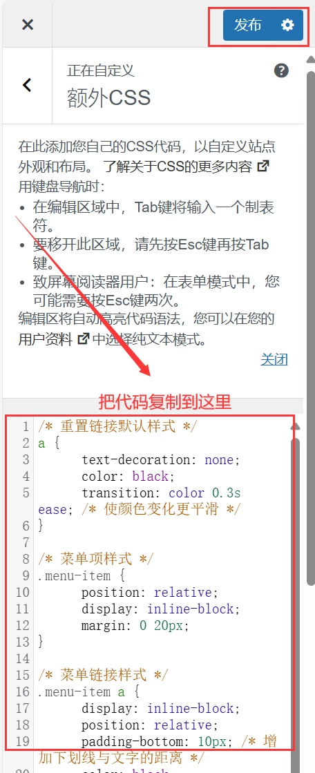 外观-->自定义-->额外CSS-->复制代码-->发布