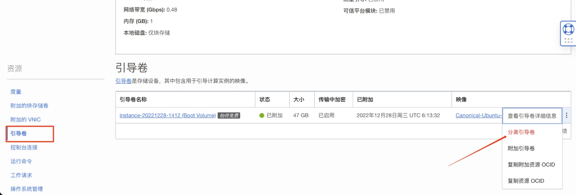 停止arm实例:注意是停止不是终止,一会还得挂载回来