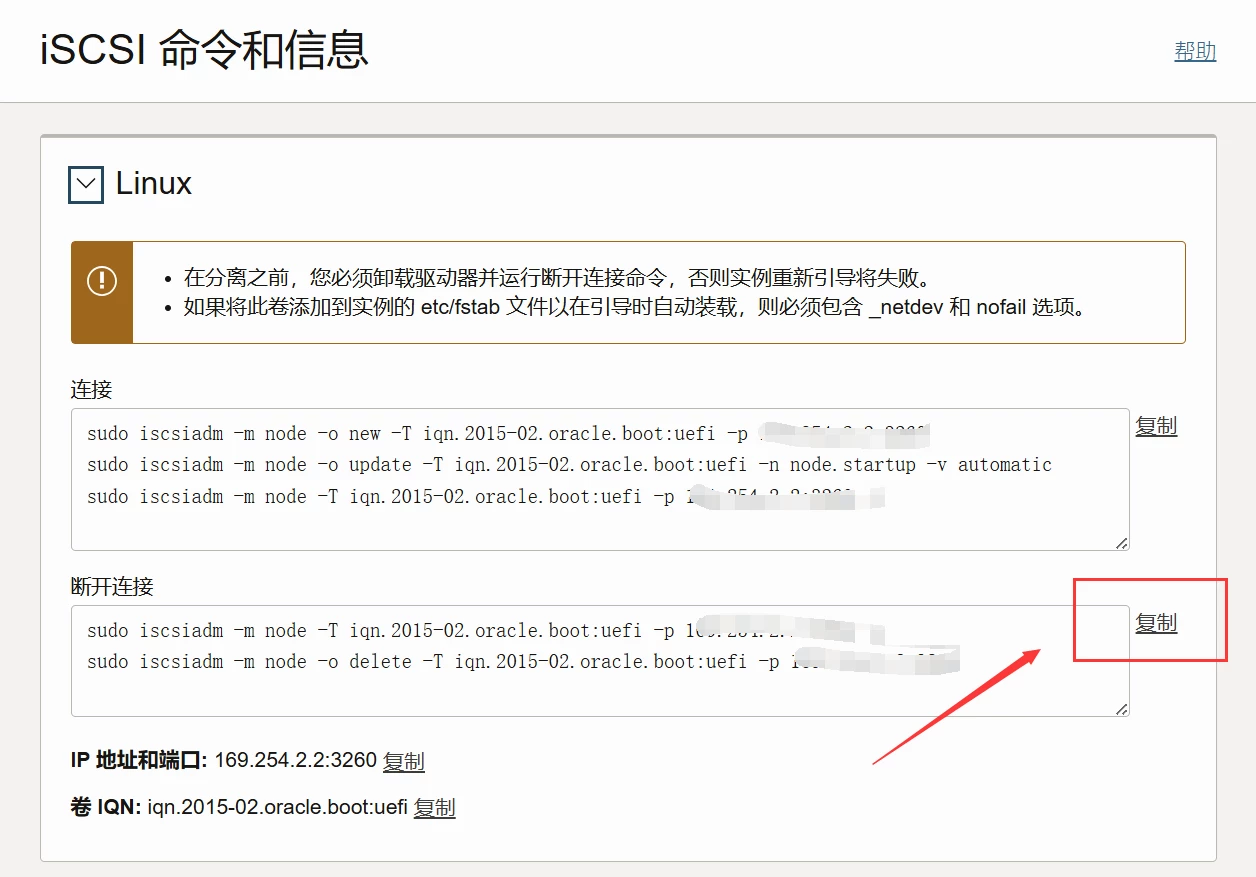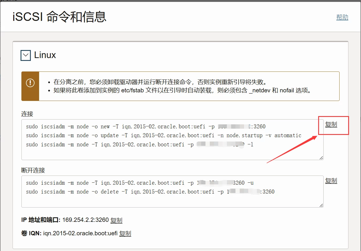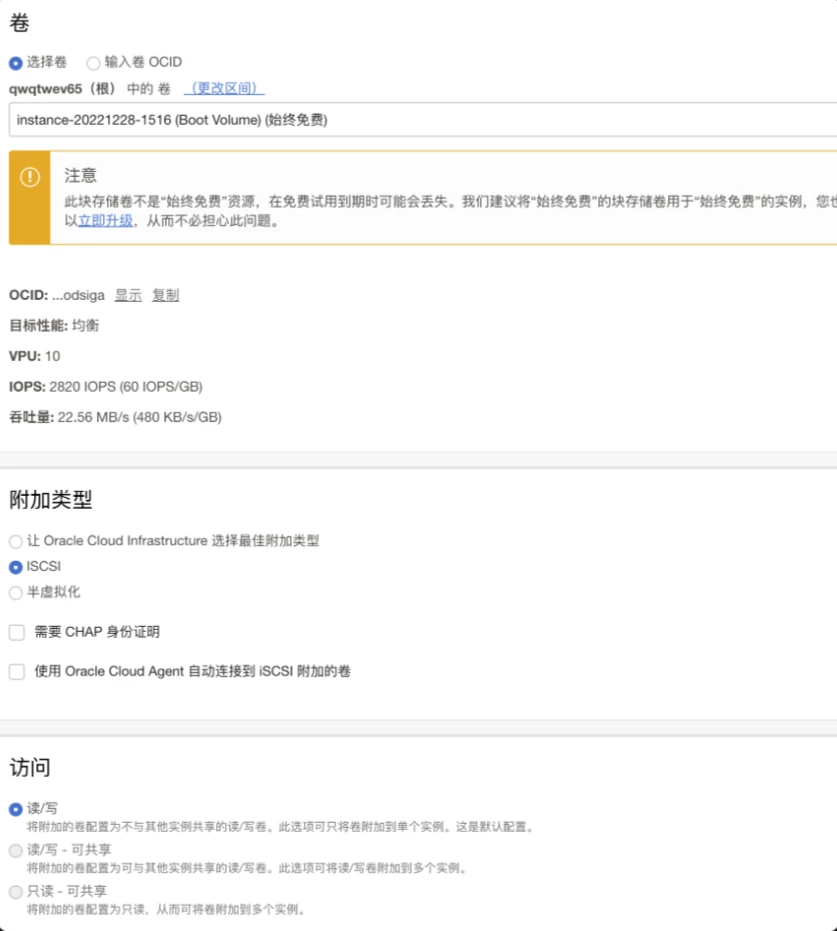 选择刚刚分离的arm引导卷,类型 ISCSI,访问 读写