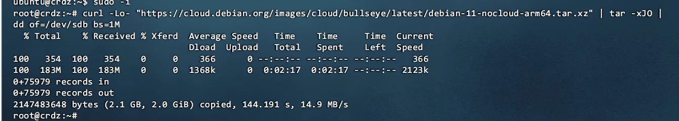 curl -Lo- "https://cloud.debian.org/images/cloud/bullseye/latest/debian-11-nocloud-arm64.tar.xz" | tar -xJO | dd of=/dev/sdb bs=1M
