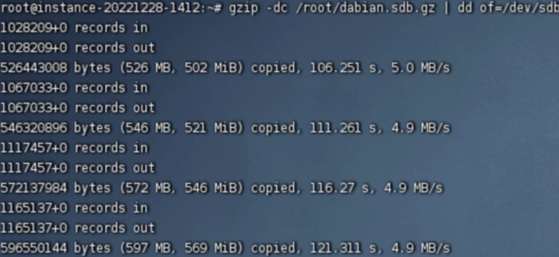gzip -dc /root/debian.arm.sdb.gz | dd of=/dev/sdb