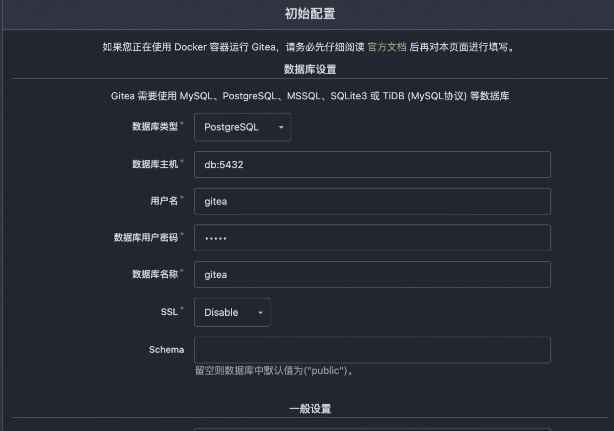 gitea服务除了需要gitea本身的镜像外,还需要一个数据库来存储用户,权限等等关系,如果我们不设置,可以使用默认的SQLite3 来初始化一个。我这边一步到位,使用了pg数据库。