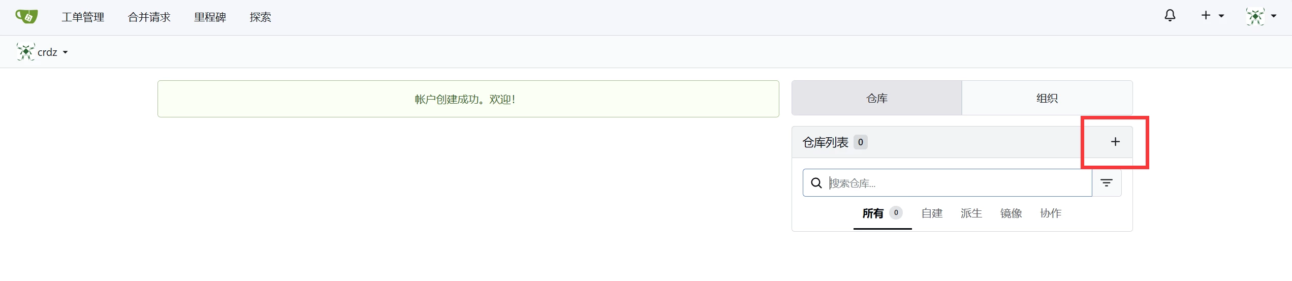 我们登录进来后,其实使用起来依旧是仓库的那些操作,创建仓库,版本分支,代码合并,创建组织(就是创建一个项目组)等等,发布包,以及镜像模式同步其它仓库(github,gitlab等等,定时同步)。