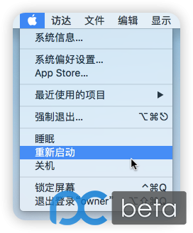 点击 苹果菜单,选择 重新启动