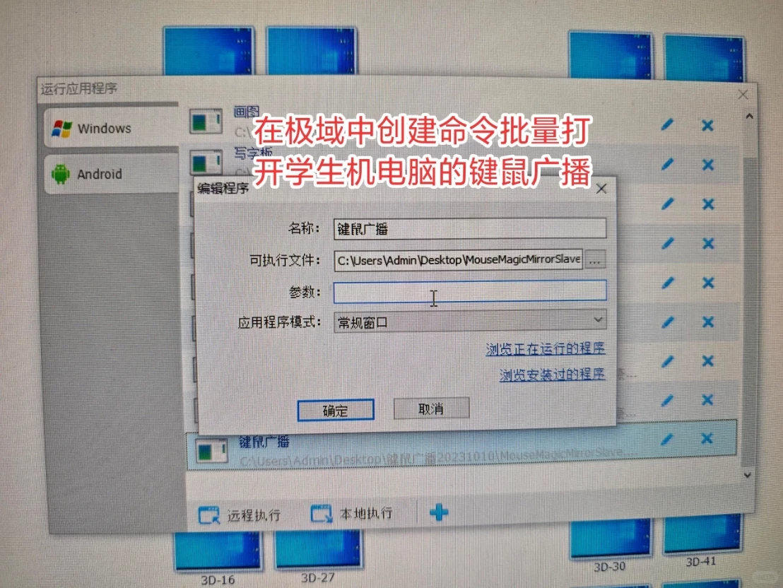 管理机房中,经常会遇到批量安装某种软件,或者向某些学生示范某种操作,这些计算机的特点是分辨率相同,软件位置也相同。有时重新同传一次系统并不见得方便,于是就可以使用这个软件。