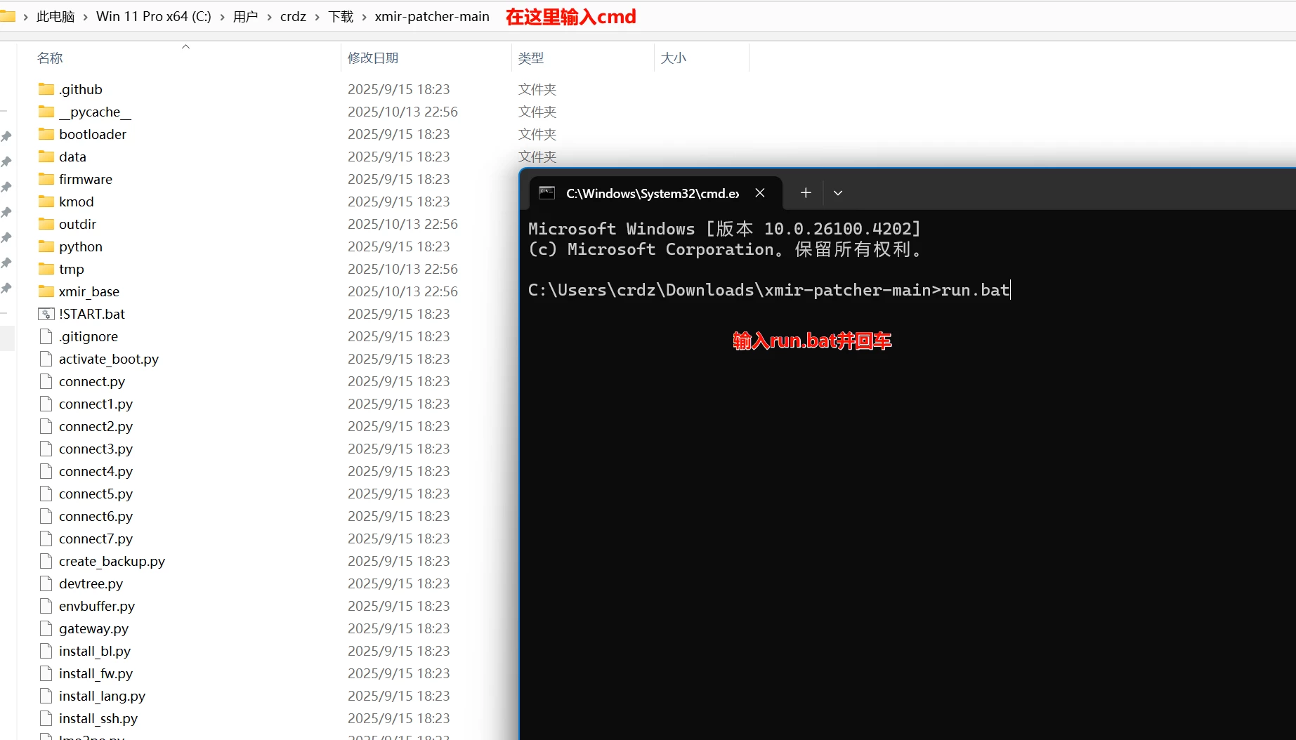 下载完成后解压,并进入cmd,输入命令run.bat并回车