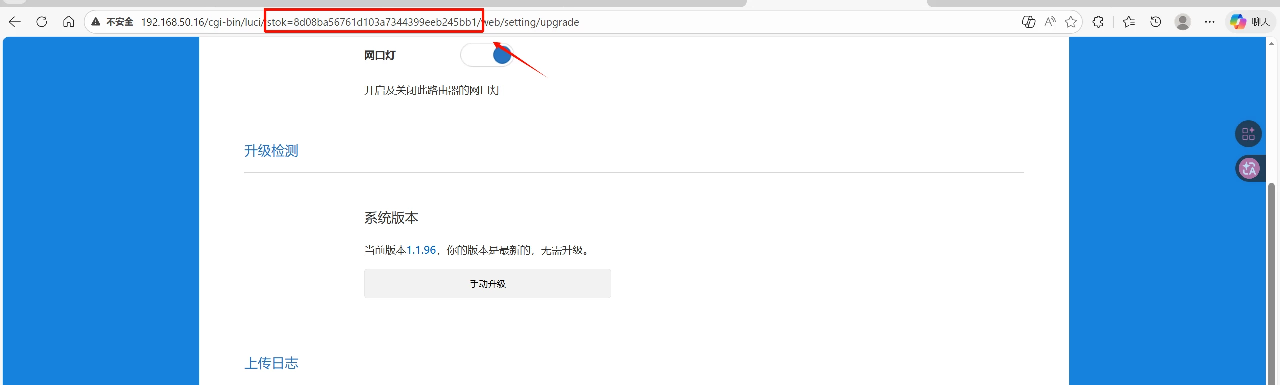 - 路由器的stok:打开路由器的web端管理界面,输入管理员密码,从上方地址栏即可获得stok。
