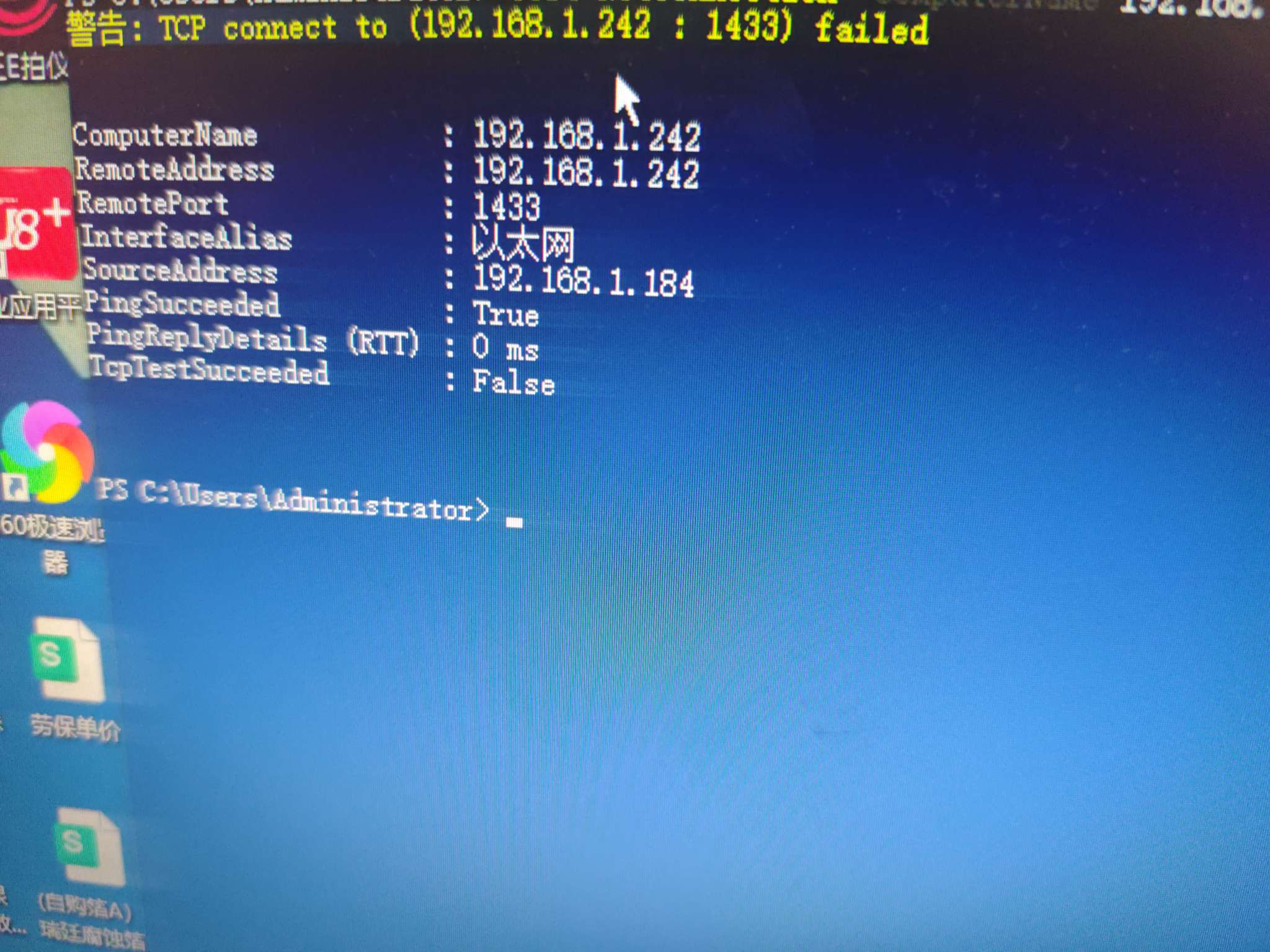 Test-NetConnection -ComputerName 服务器IP -Port 数据库端口号 # 例如:Test-NetConnection -ComputerName 192.168.1.100 -Port 1433