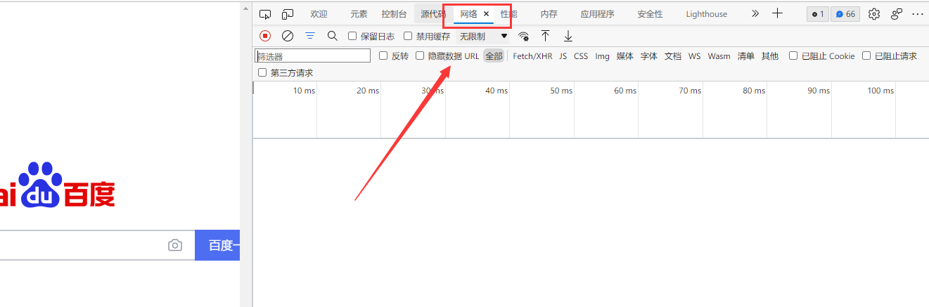 2、按F12打开开发者模式,选择网络