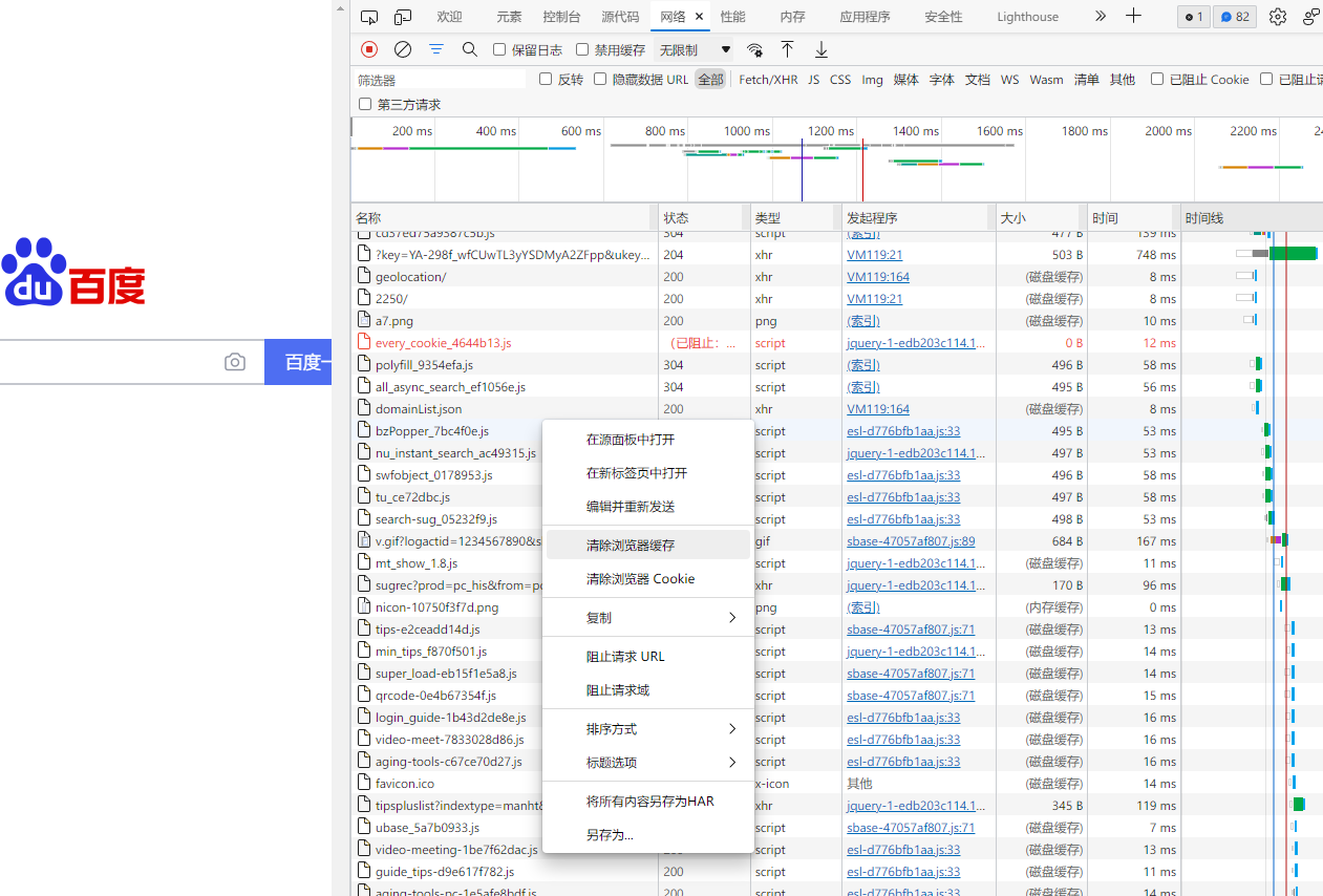 1、打开要删除缓存的网站,比如百度
