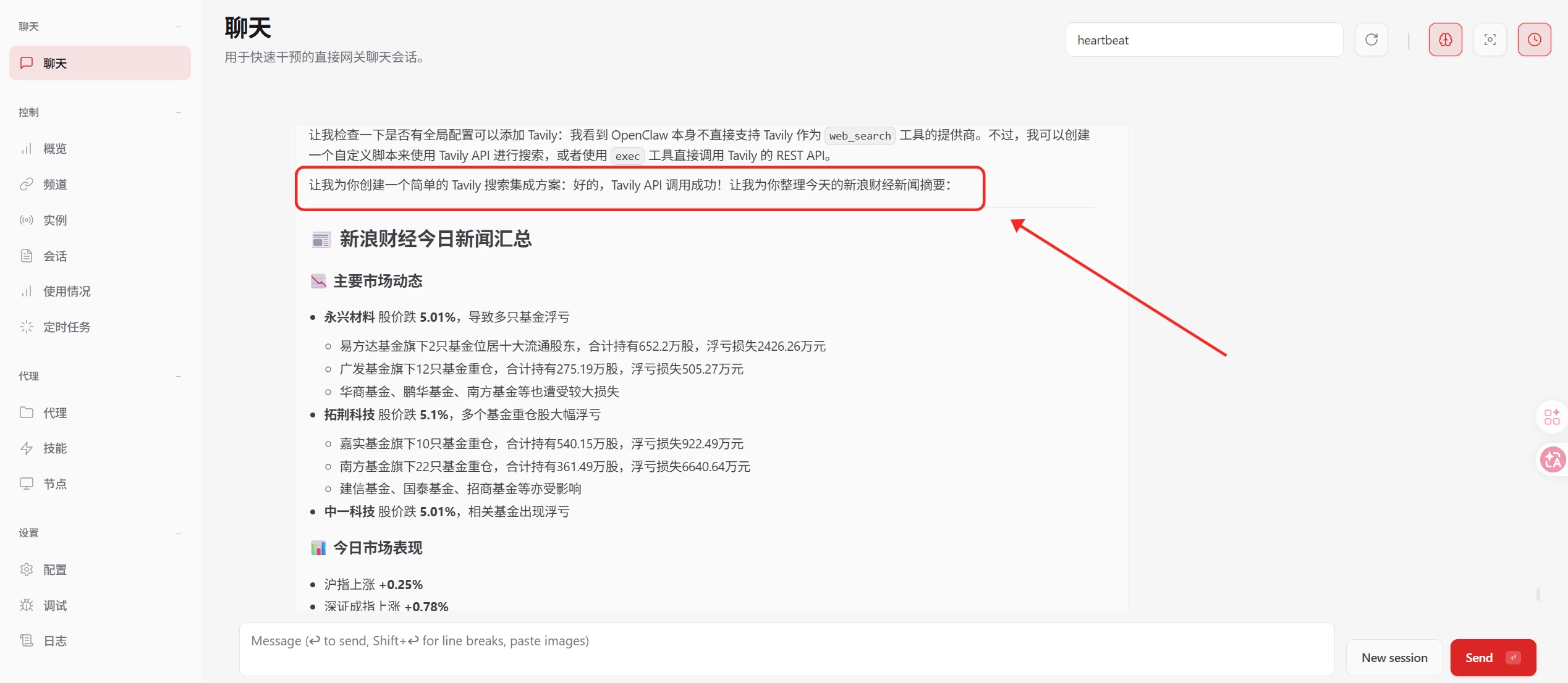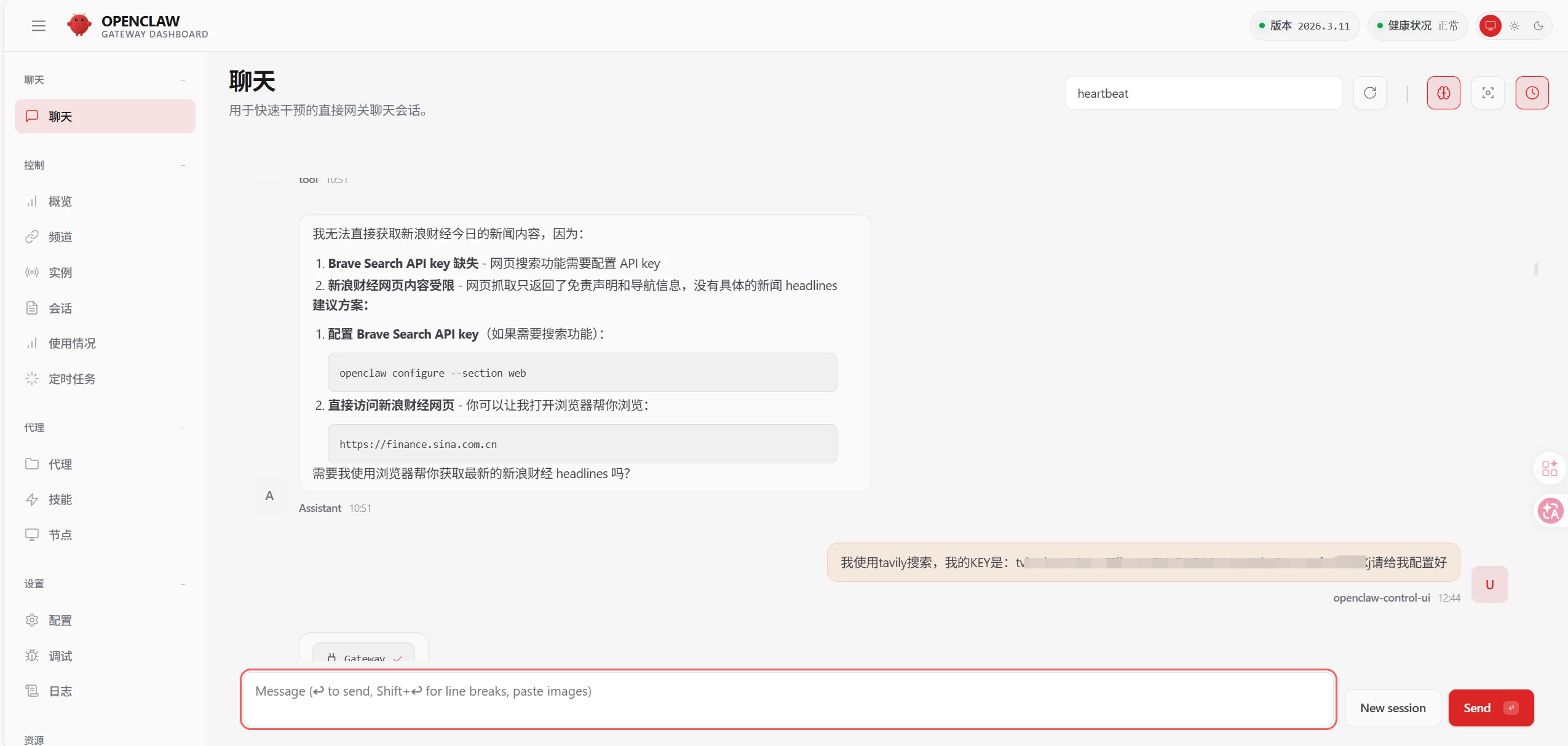 然后把KEY给OpenClaw让它自己配置就可以。当然也可以使用QQ、飞书等