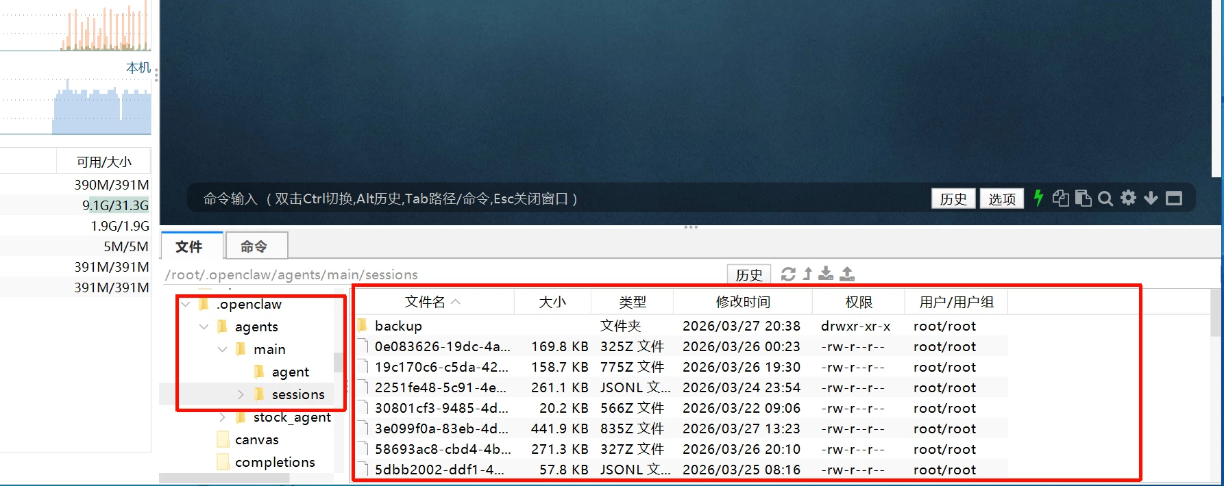 删除或备份以前的聊天记录只保留最新的。路径:/root/.openclaw/agents/main/sessions(agents后面就是你的agent的名称,选择对应的就可以了)