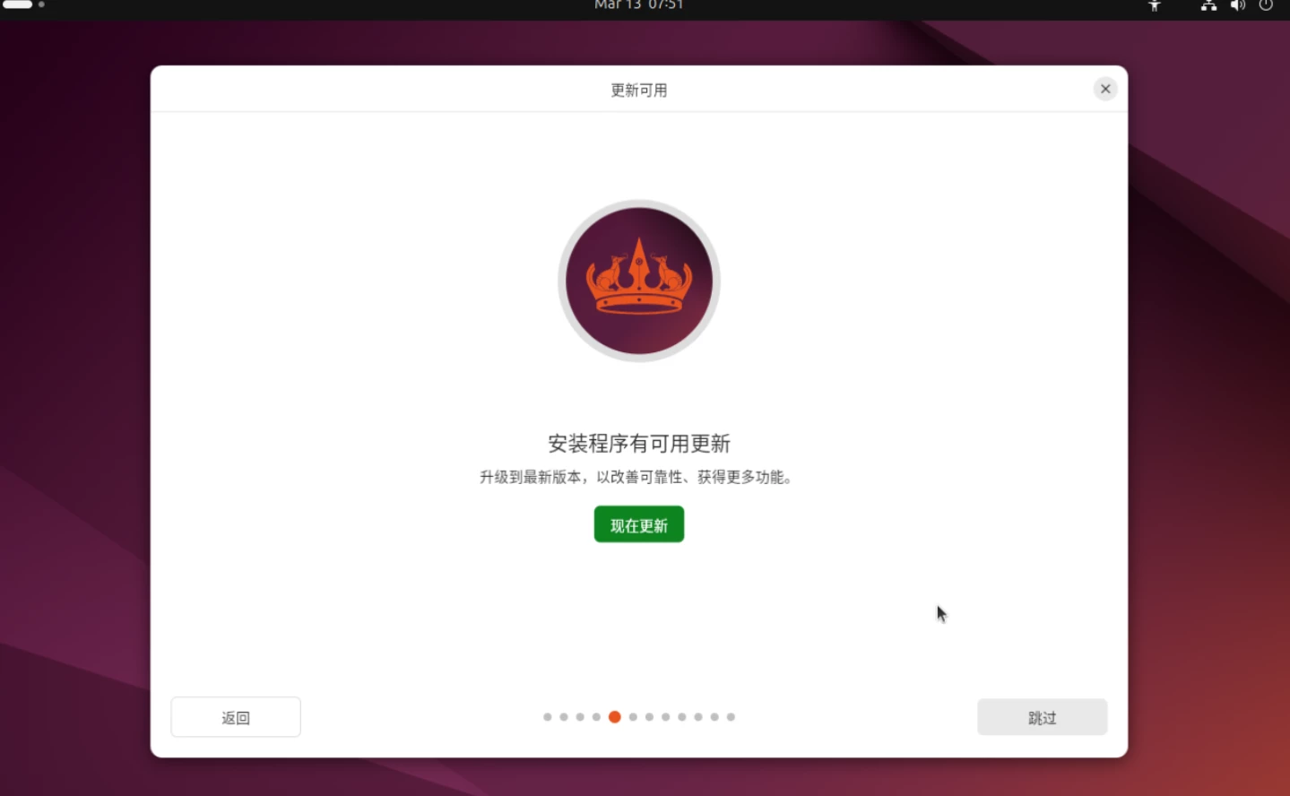 - 更新可用:选择「跳过」(避免安装过程卡顿)→ 点击「下一步」