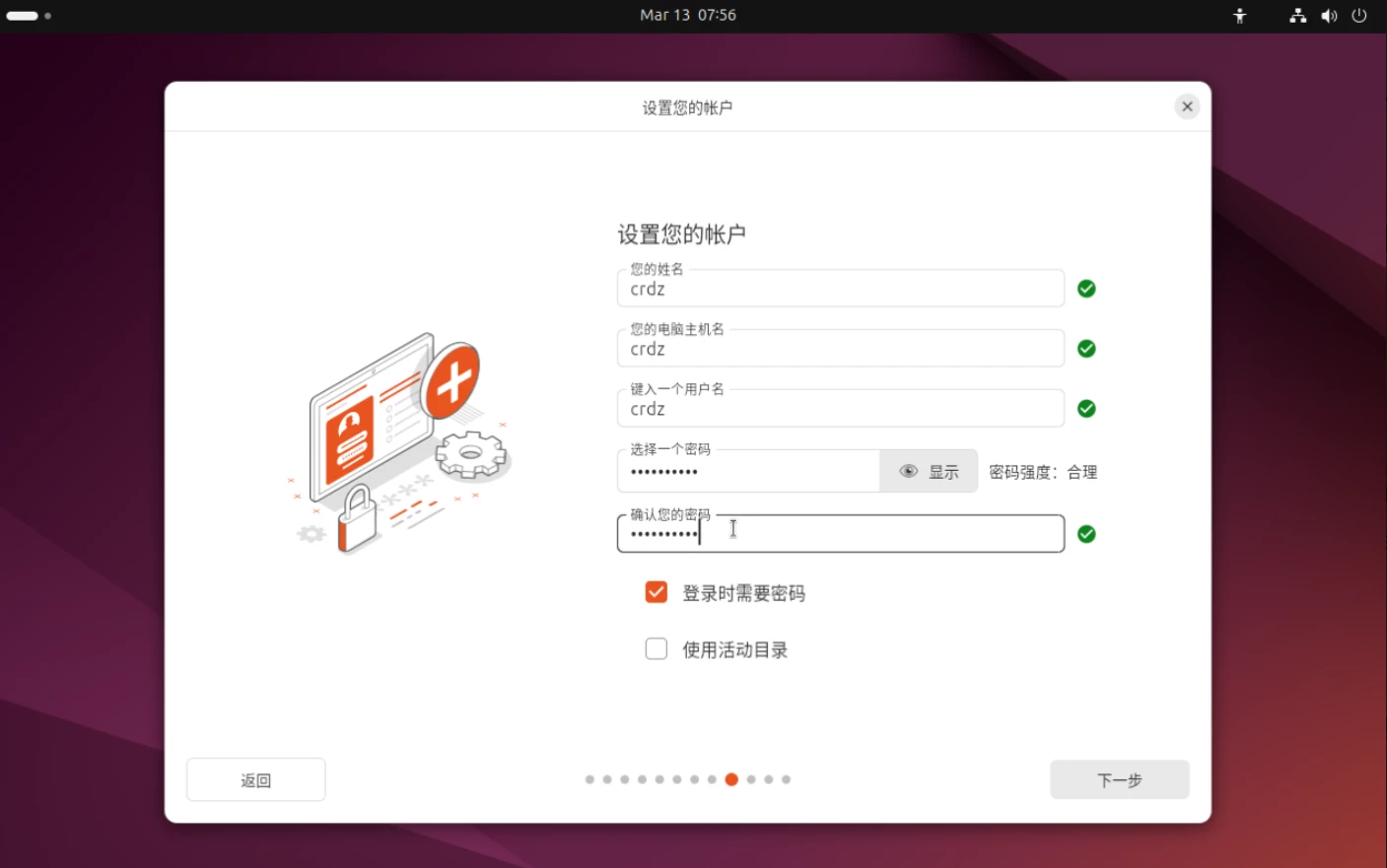 - 重启后,输入用户名和密码登录 Ubuntu 桌面