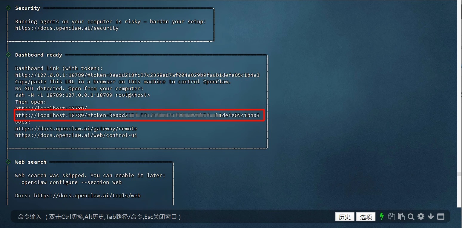 登陆并创建好自己的机器人后,直接连接SSH然后输入官方三条命令