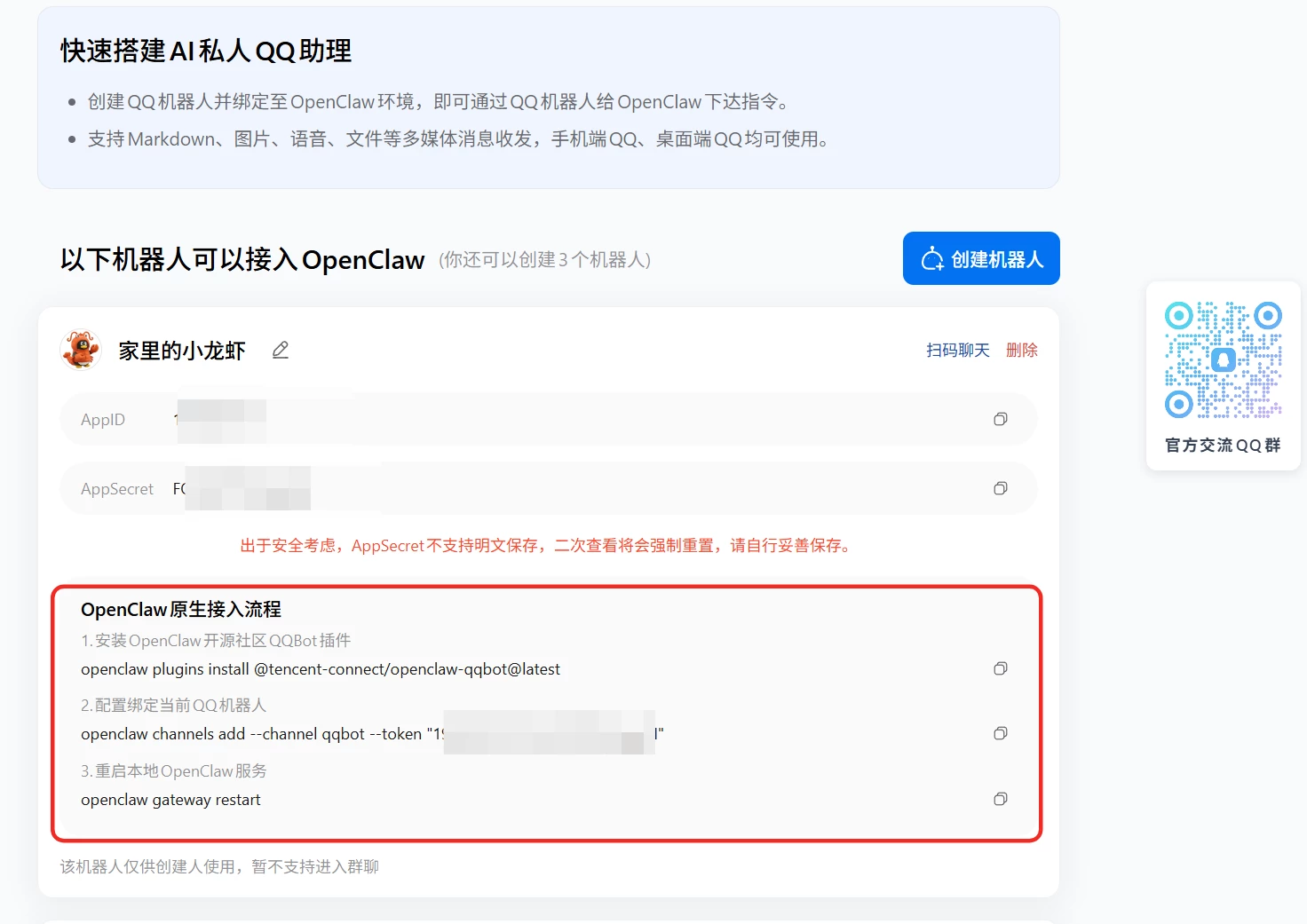 现在我们安装QQBot让我们用QQ控制小龙虾,这个简单直接官方走起。