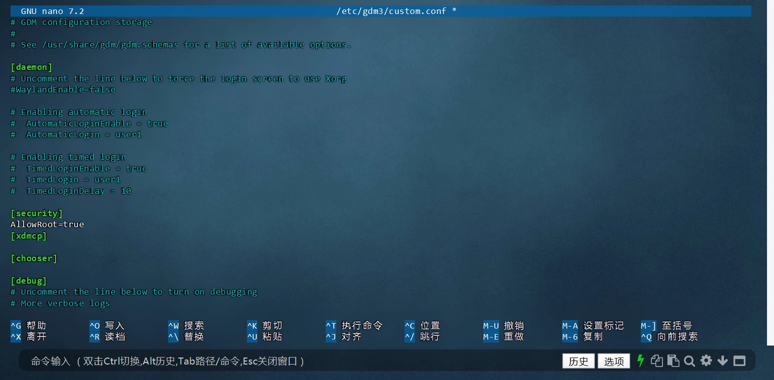 sudo nano /etc/gdm3/custom.conf - 找到