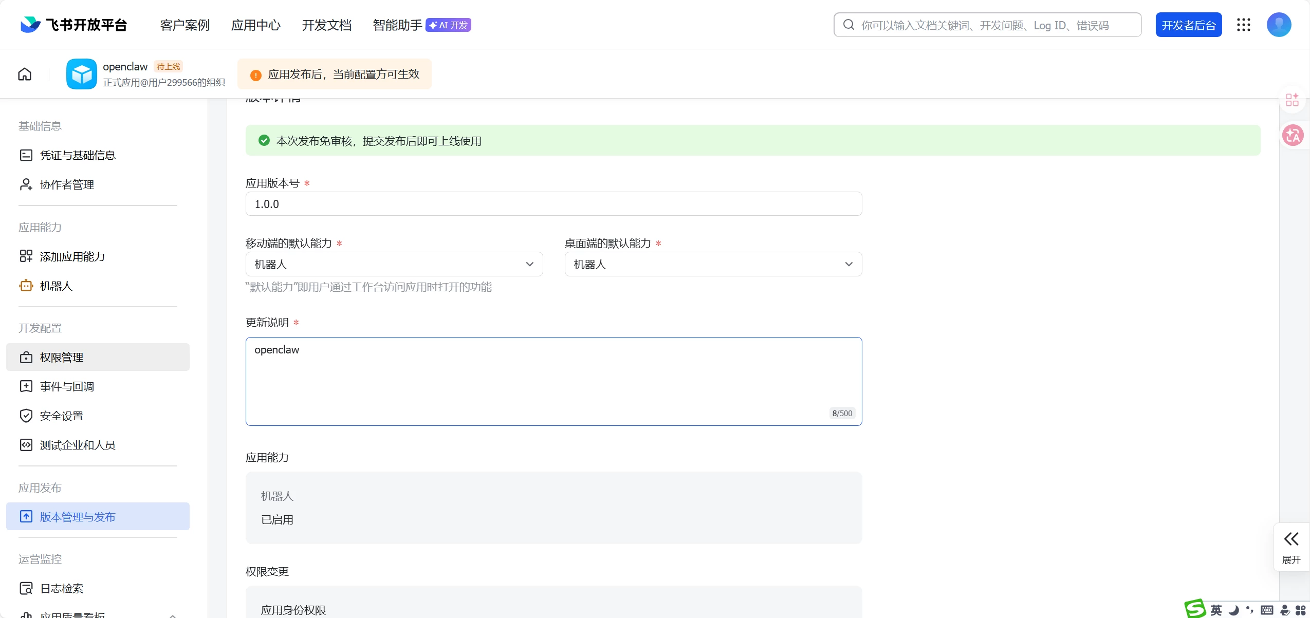 回到飞书后台