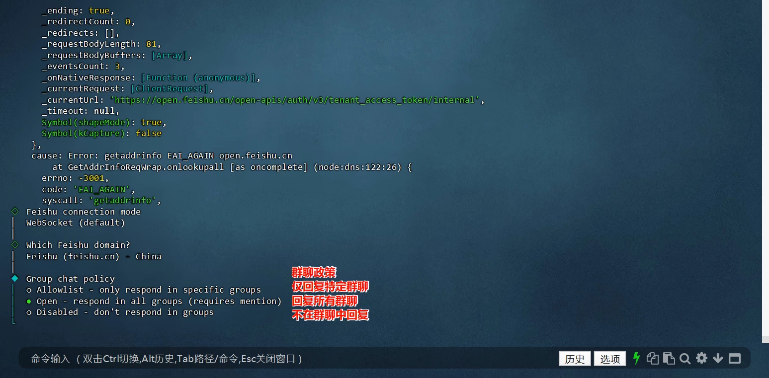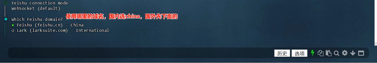 飞书的连接模式,默认就行