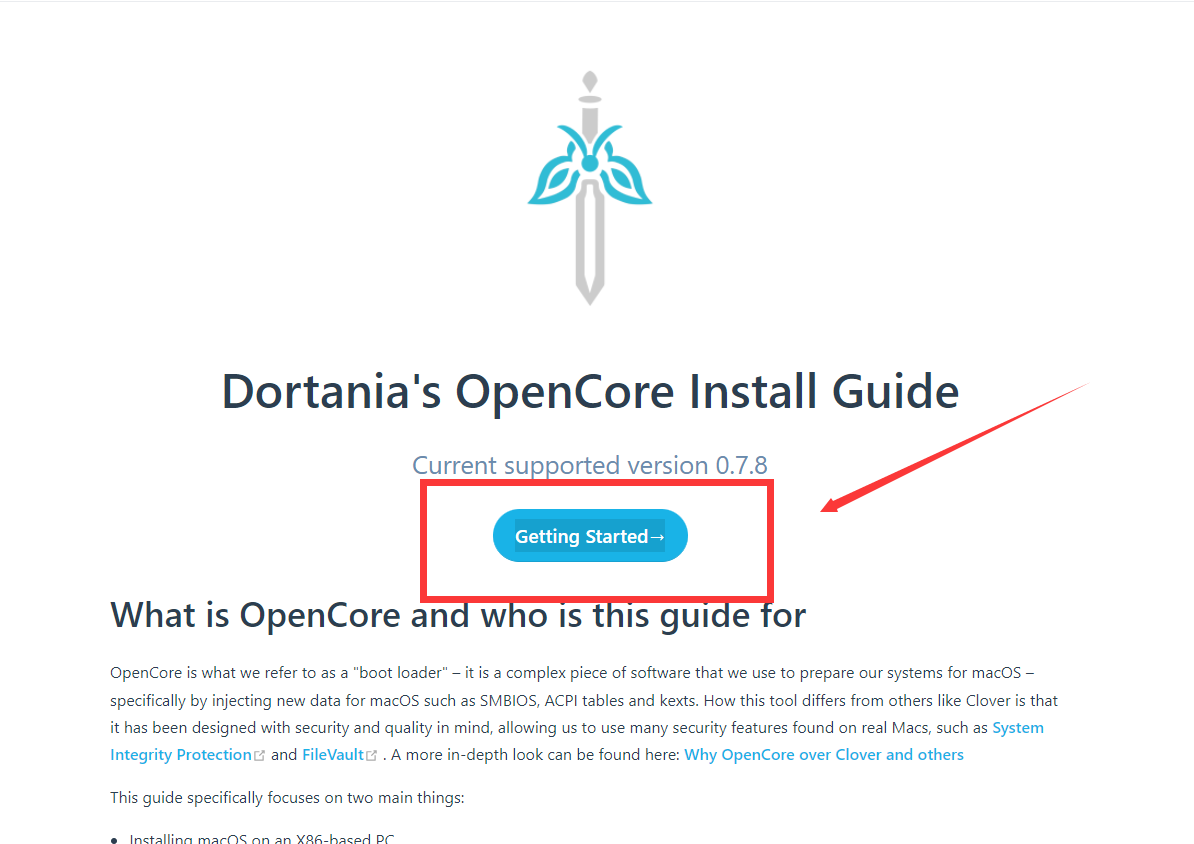 1、打开OpenCore的网站:OpenCore Install Guide (dortania.github.io)点击Getting Started→