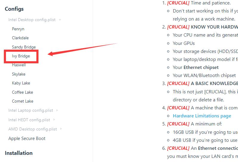 什么都不用管直接看左边的configs就可以了,configs罗列了各种平台,比如我的CPU是1230-v2,这个cpu就是Ivy Bridge,百度一下就知道了。