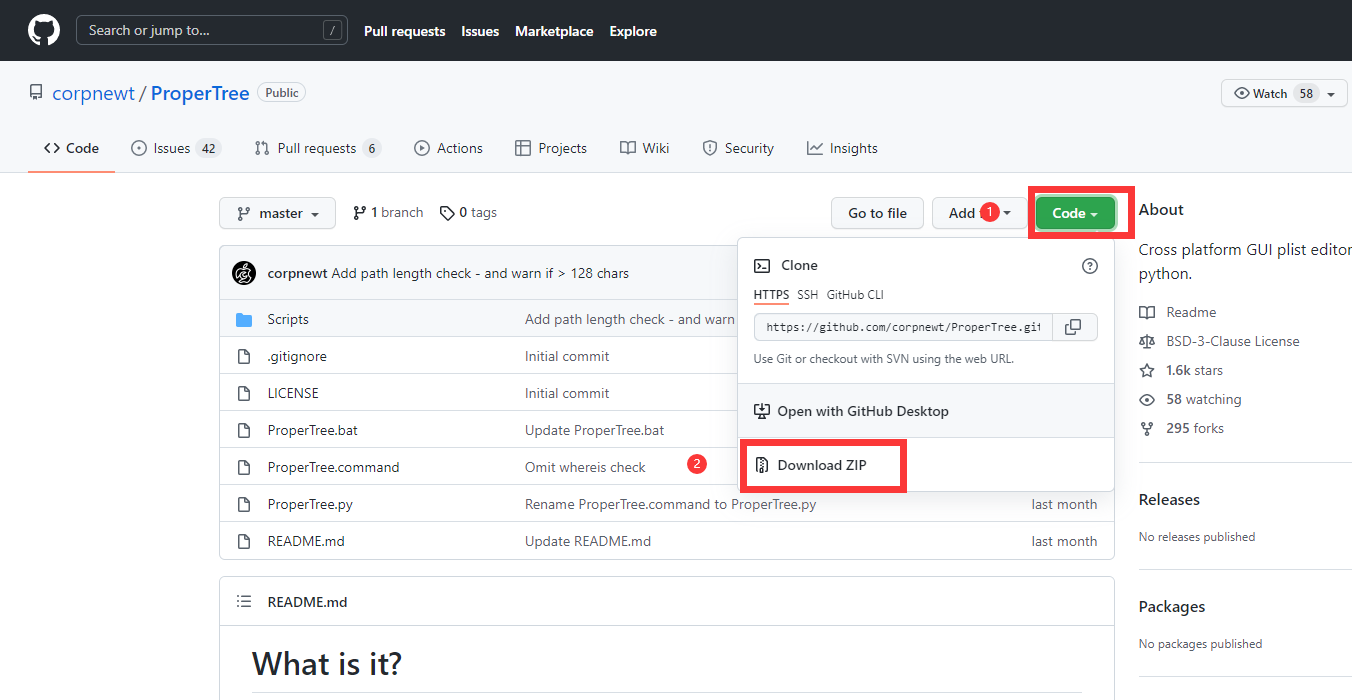 进入ProperTree后点击Code然后点击Download ZIP下载下来