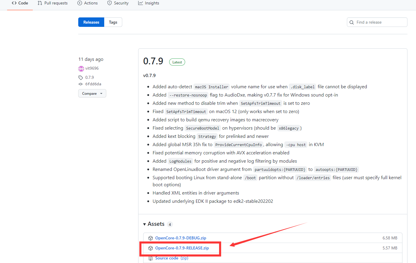 然后进入Sample/config.plist下载里面的OpenCore-0.7.9-RELEASE(RELEASE是发行版的意思)目前最新版是0.7.9