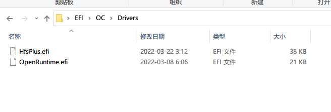 我们得到一个文件HfsPlus.efi,把它放入EFI文件夹下面的Drivers文件夹里面,如下: