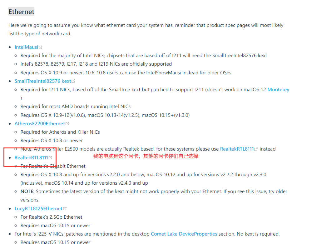 网卡驱动就不适用于macOS 12 Monterey,所以如果装新版的os的时候一定要看清楚是不是支持。