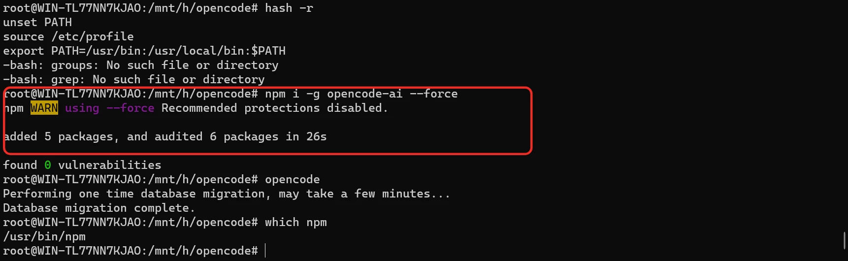 当安装提示这个的时候就说明是调用的Windows下的NPM,所以要临时使用WSL下的NPM