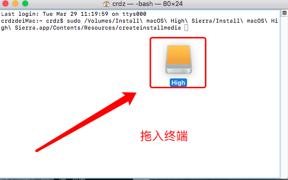 --volume空格,然后把要写入第二个镜像的分区拖入终端,会自动在终端加入路径。