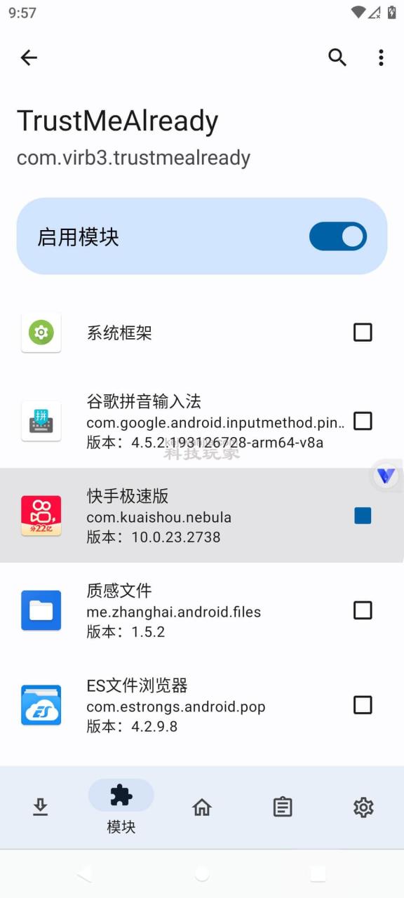 1、虚拟机访问教程开头的链接下载安装xp模块文件夹中的【sig3Xposed模块.apk】,启用模块并勾选某手极速版。该模块是某大佬写的!