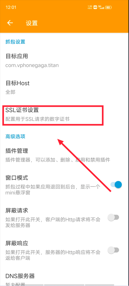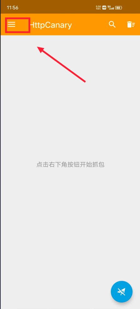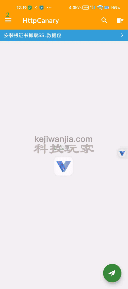 返回到主界面点击右下角小飞机开始对光速虚拟机抓包(出现提示安装CA证书,直接点不安装)