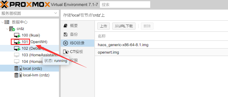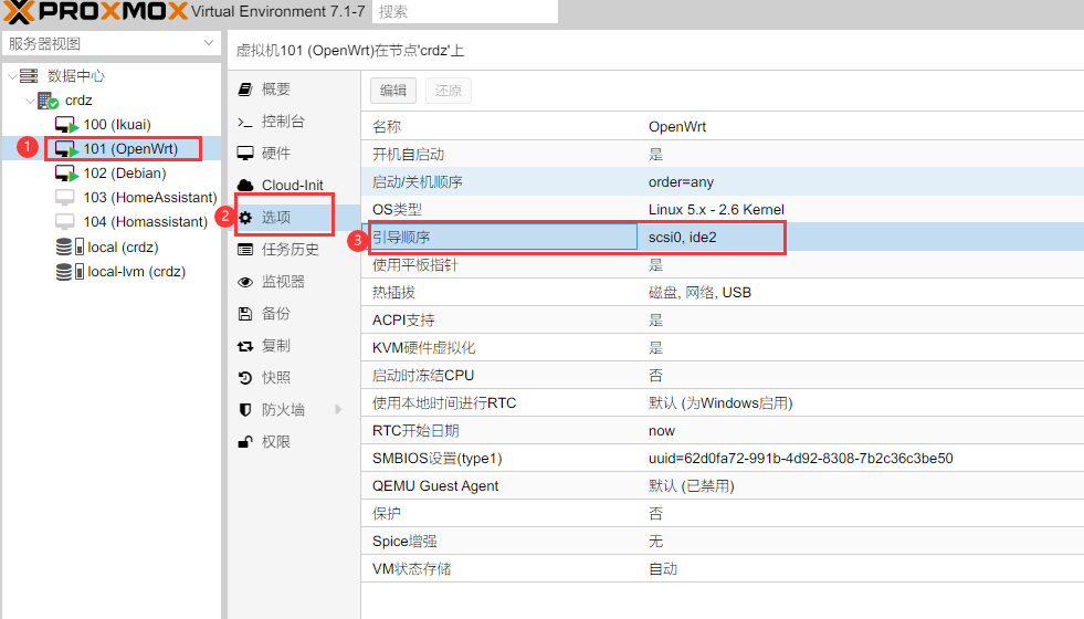 #下面是例子,不必照抄,照抄应该也不对,vmid以及固件位置都是之前步骤提到过的.