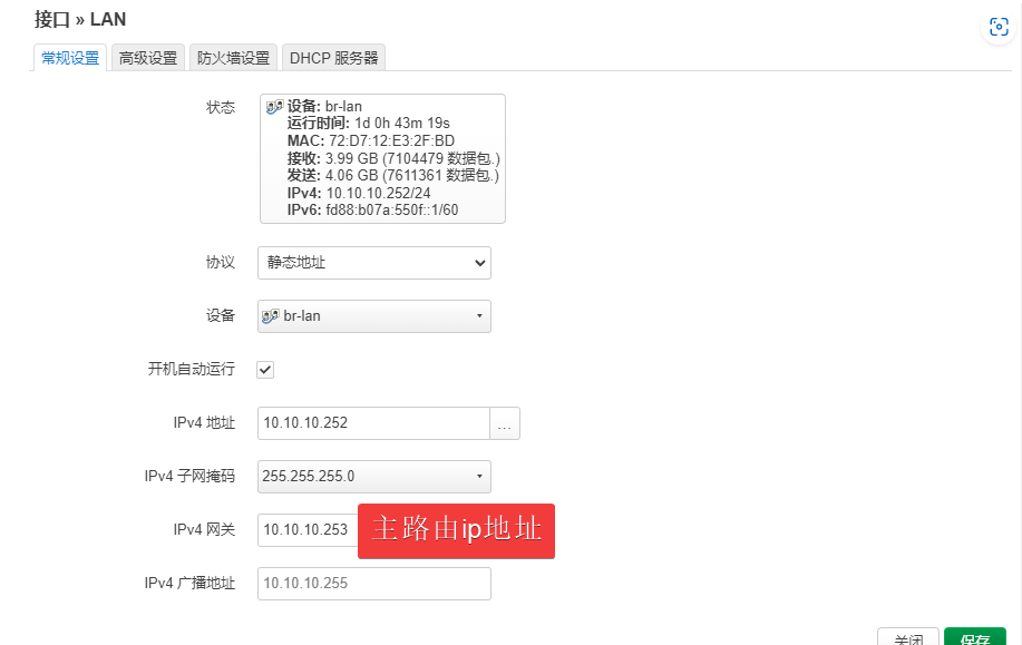 主路由的网关设置为openwrt的ip地址即可完成配置