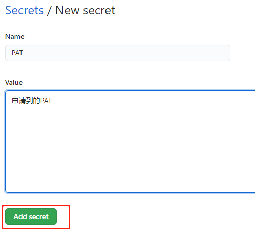 PAT: ${{ secrets.PAT }} #此处PAT需要申请,教程详见:https://www.jianshu.com/p/bb82b3ad1d11