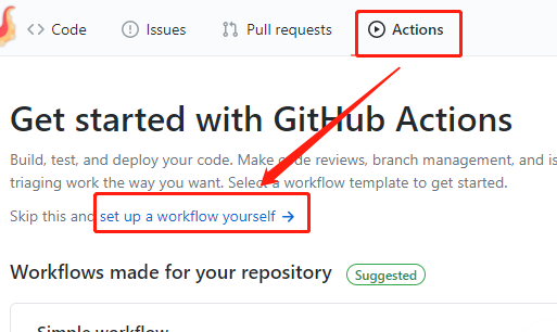 在创建完成页面点击Actions再点击set up a workflow yourself