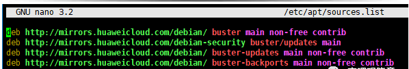 deb https://mirrors.huaweicloud.com/debian/ stretch-backports main non-free contrib